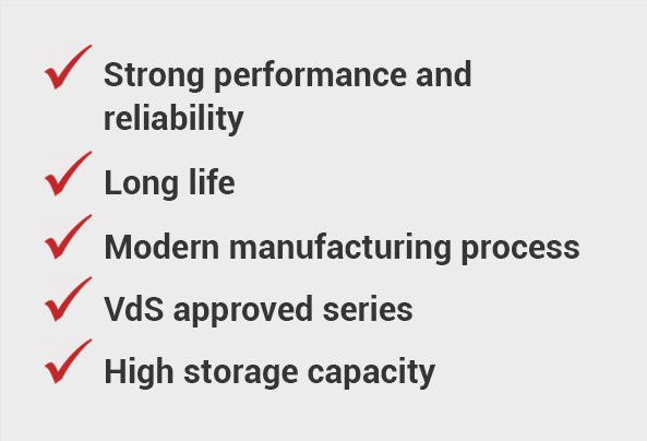 Highest quality and the latest technology: Our own SUN Battery brand offers a wide range of VdS-approved AGM batteries.