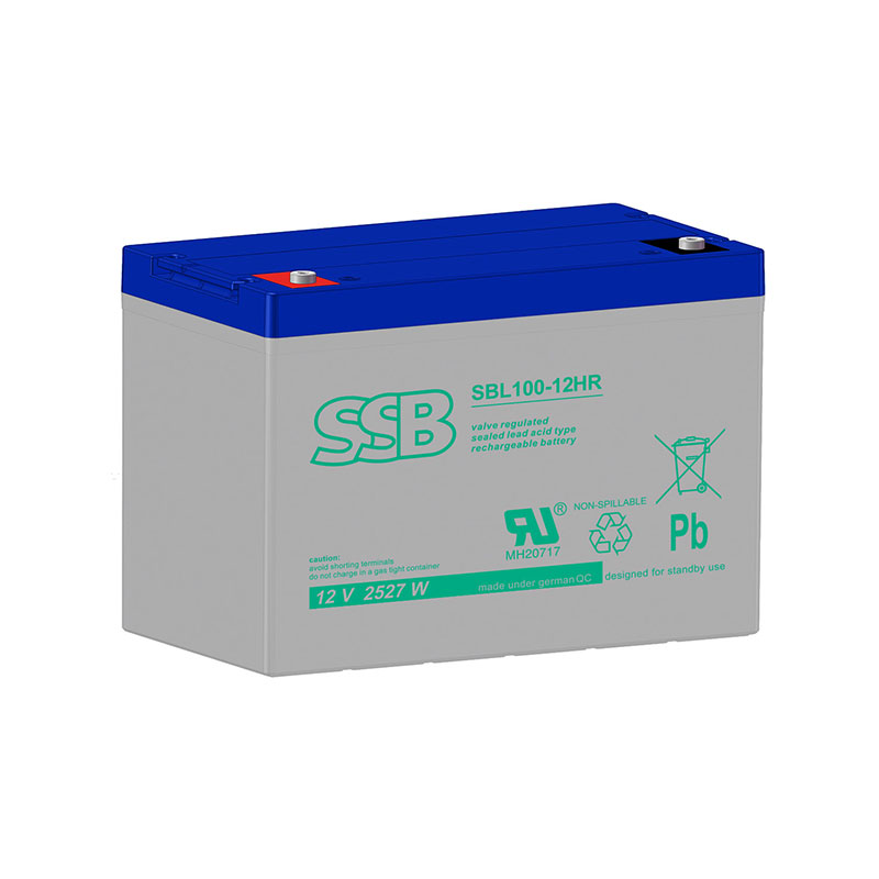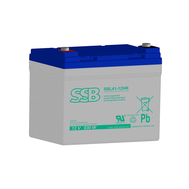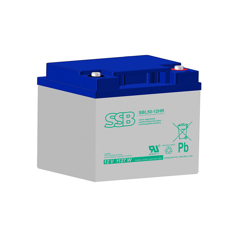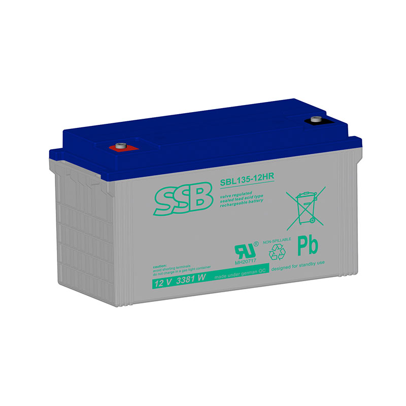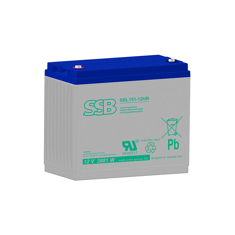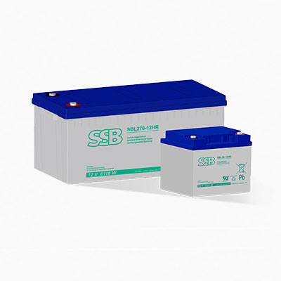 HR stands for „high rate“ – or high discharge current over a short time – and SBL stands for „long life“. This series combines outstandingly high energy density with the longevity of the SBL series. Thus, the SBL-HR series is perfect for continuous high power applications, especially UPS installations. As well as excellent discharge performance, the series also boasts a design life of over 12 years according to EUROBAT. As compact 12 V batteries, they are particularly suitable for installation in battery cabinets or in compact racks.
